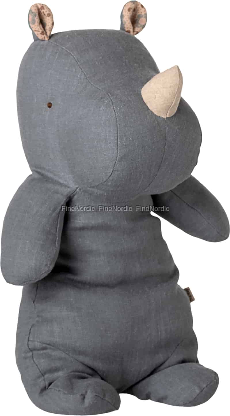Välkomna denna milda jätte från Mailegs safari till ert hem. Noshörningen är tillverkad av det mjukaste dammblå tyget och är redo att bli en kär vän för fantasifull lek och de allra mysigaste kramarna.
