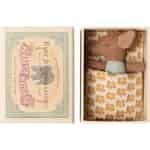 Upptäck Mailegs förtrollande värld, där fantasin bor i de allra minsta detaljerna. Denna Sleepy Wakey babymus är en perfekt introduktion till den världen, och den anländer i sin alldeles egna tändsticksask-säng. Asken i sig är en skatt, med vintageinspirerade illustrationer som viskar om magin inuti. Skjut den öppen för att hitta den sötaste lilla babymusen, nerbäddad under en mjuk, blommönstrad sovsäck, redo för alla delar av ditt barns dagslånga berättelser.