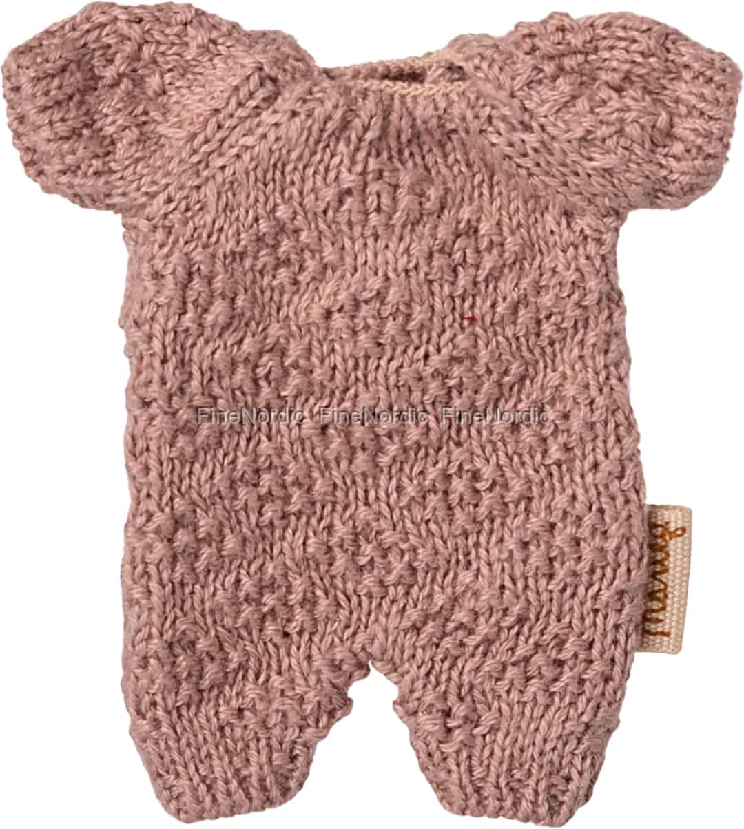 Svep in din allra minsta Maileg-vän i den milda värmen från denna vackert utformade stickade dräkt. Det mjuka, ljungfärgade tyget och den charmiga designen är perfekt för lugna eftermiddagar fyllda med låtsaslekar och underbara sagor.