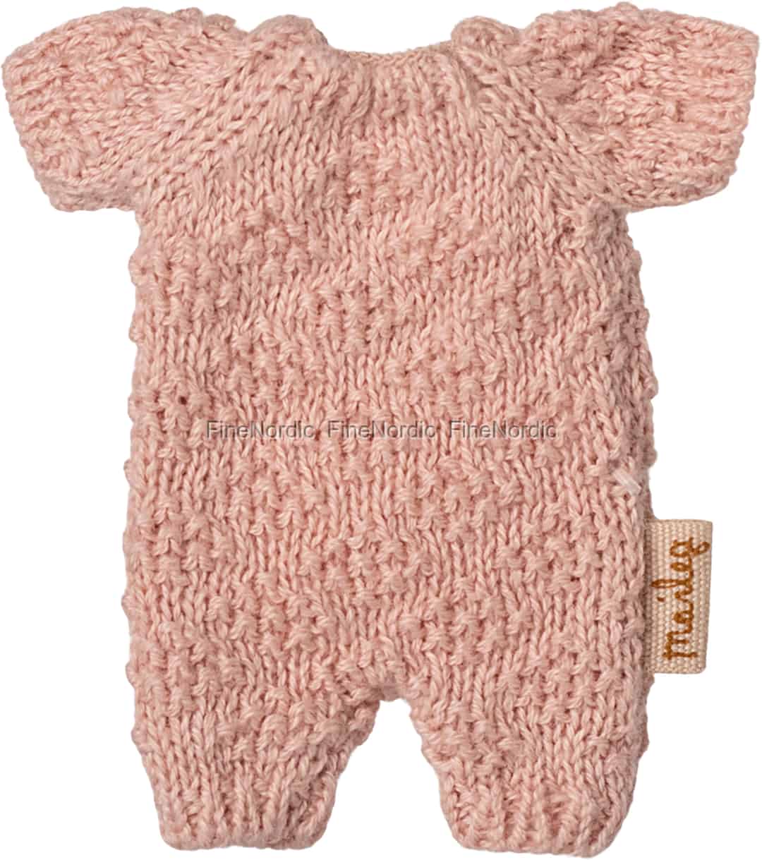 Förbered din lilla Maileg-vän för en dag av stillsamma äventyr med denna utsökt mjuka, stickade dräkt. I en ljuvlig rosa nyans bjuder dess charmiga textur in till lugna stunder och fantasifull lek, och adderar en känsla av värme till deras miniatyrgarderob.