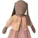 Håll din kära Maileg-kanin underbart gosig i denna utsökt detaljerade kofta. Stickad i en mjuk, ljusrosa nyans är den det perfekta lilla plagget för tebjudningar, upptäcktsfärder i trädgården och stilla stunder av fantasifull lek.