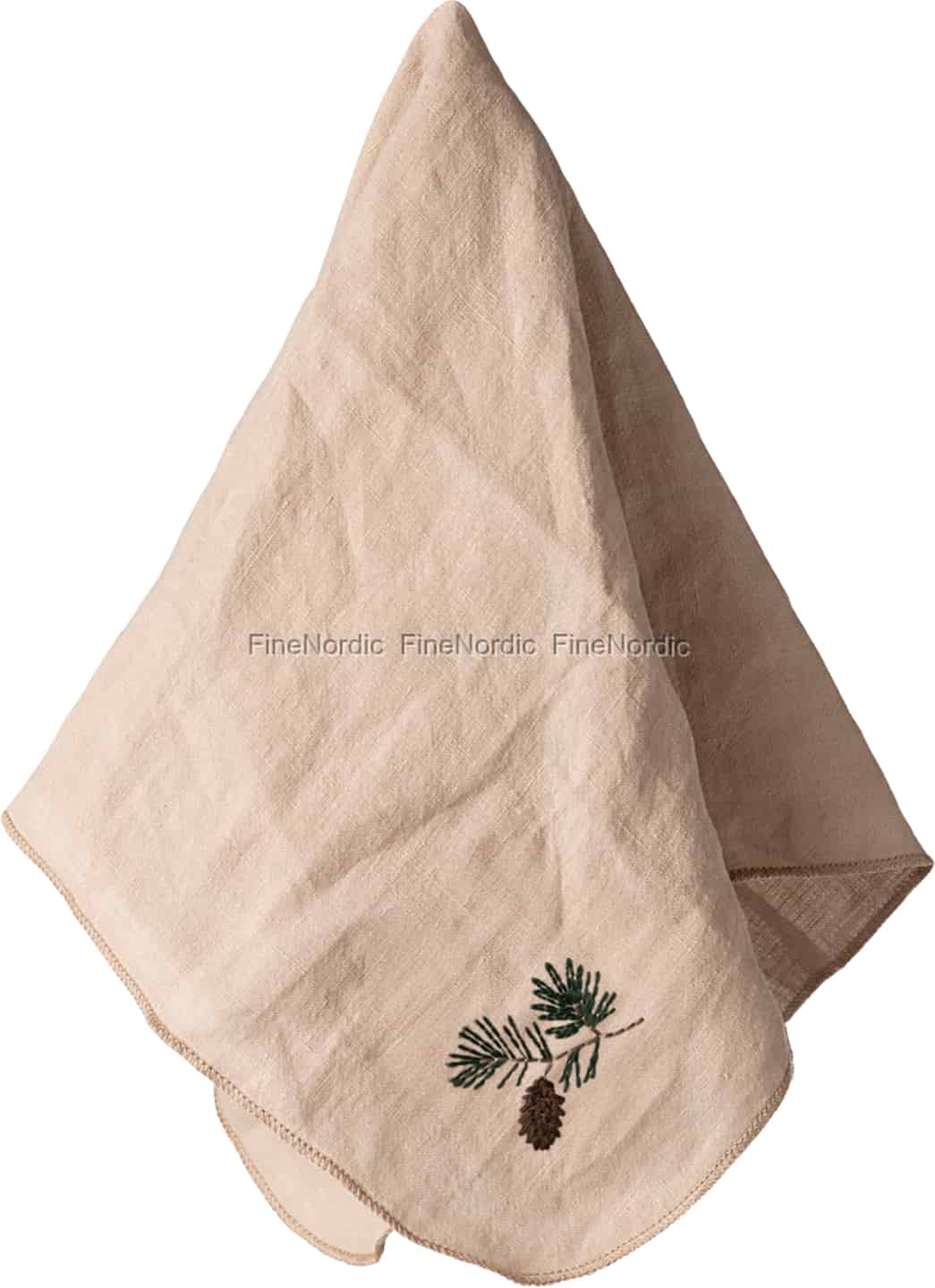 Bjud in den skandinaviska skogens stilla magi till ditt bord i jul. Varje servett från Maileg är som en liten målarduk, tillverkad av vackert texturerat, naturligt linne som känns underbart mjukt mot huden. Berättelsens stjärna är det charmiga tallkottebroderiet, ett motiv som börjar sitt liv som en handritad illustration av märkets grundare, Dorthe Mailil. Det är en detalj som viskar om promenader genom krispiga vinterskogar och den enkla, äkta skönheten som finns i naturen.
