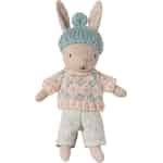 Föreställ dig en krispig vintermorgon där små fotspår syns i snön. Den här lilla kaninen, ombonad i sin mintblå mössa och mönstrade tröja, är redo att följa med ditt barn på en magisk resa. Från viskade hemligheter i en mysig lekhörna till storslagna äventyr i trädgården – dess milda uttryck och mjuka, kramvänliga form gör den omedelbart till en älskad vän. Omsorgen för detaljer, ett signum för Mailegs design, syns i varje söm, från den grovstickade tröjan till de små byxornas mjuka väv. Det här är inte bara en leksak; det är en karaktär som väntar på att en saga ska börja.