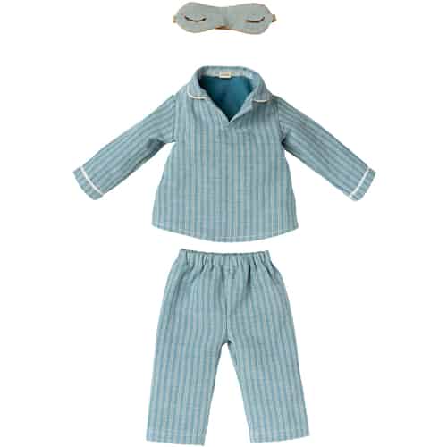 Maileg Ljusblå Randig Pyjamas med Sovmask för Maxi Mus