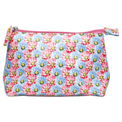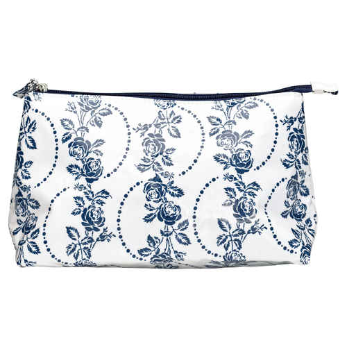 GreenGate Vaxduk Oilcloth Cosmetic Bag Fleur Blue Large