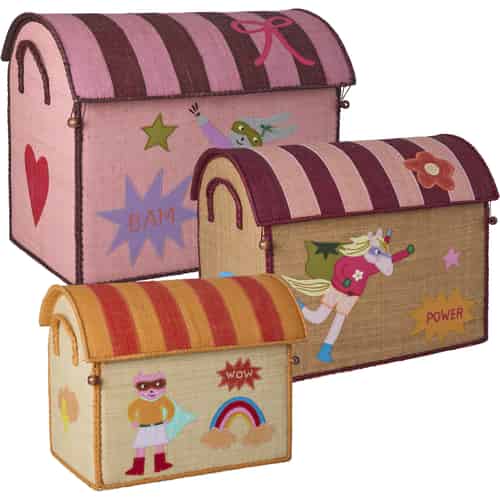 Rice Raffia förvaringshus "Hero"-tema - Rosa - Set om 3