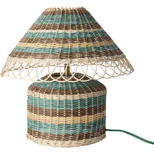 Rice Bordslampa i rattan - Brunaktiga ränder - E27-sockel och 2-stiftskontakt - Låg