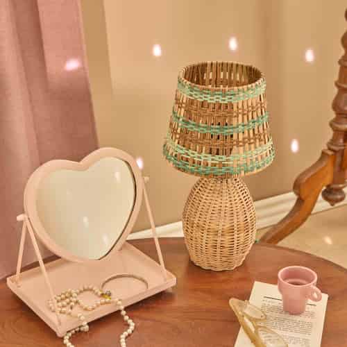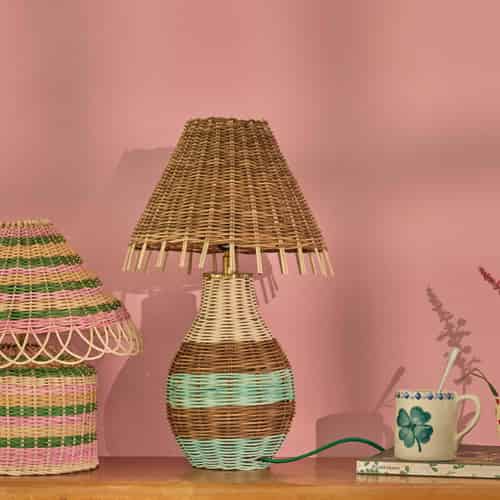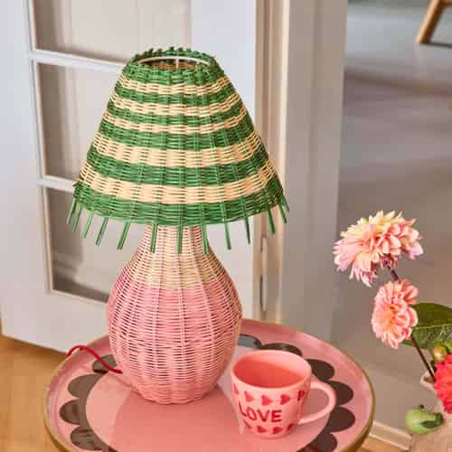 Rice Bordslampa i rattan - Rosa ränder - E27-sockel och 2-stiftskontakt - Låg