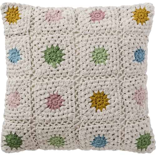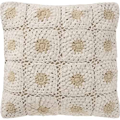 Ib Laursen Kuddfodral - Virkat - Natur - Flerfärgade blommor, Baksida av naturfärgad canvas 50 x 50 cm