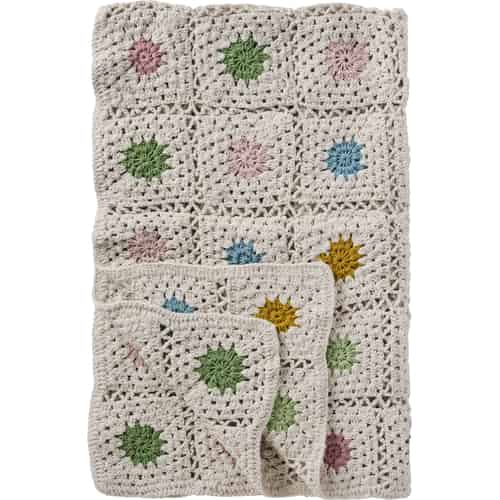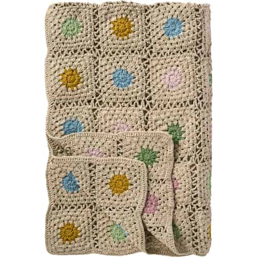 Ib Laursen Pläd - Virkad - Naturfärgad - Flerfärgade blommor 130 x 170 cm