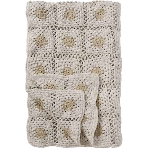 Ib Laursen Pläd - Virkad - Kräm - Naturfärgade blommor 130 x 170 cm