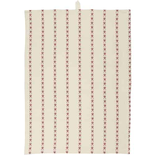 Ib Laursen Kökshandduk Merle Natur med Rött Mönster och Text