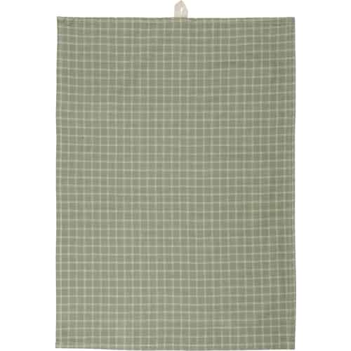 Ib Laursen Kökshandduk Holger Dusty Green med Naturfärgade Små Rutor
