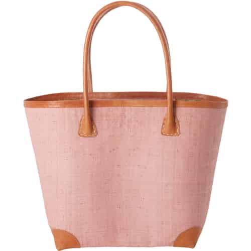 Rice Raffia Shopparväska - Läderdetaljer - Mjukt Rosa - Stor