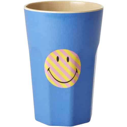 Rice Melamin Kopp - Smiley - Blå - Hög