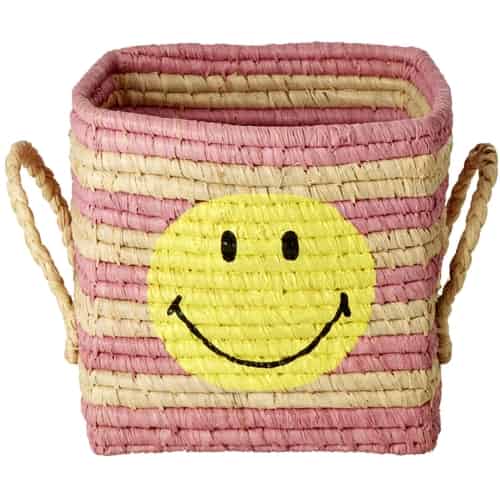 Rice Raffia Korg - Kvadratisk - Multicolor - Smiley - Liten
