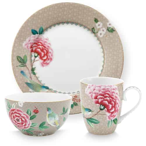 Pip Studio Frukostset Blushing Birds Kaki Set med 3 i Presentlåda