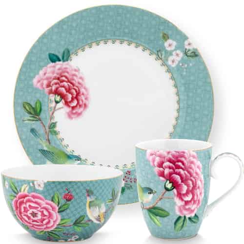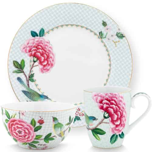 Pip Studio Frukostset Blushing Birds Blå Set med 3 i Presentlåda