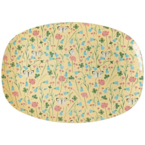 Rice Melamin Tallrik - Rektangulär - Mjuk Gul - Butterfly - Liten