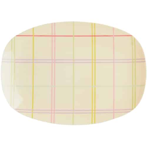 Rice Melamin Tallrik - Rektangulär - Kräm - Multicolored Check - Liten
