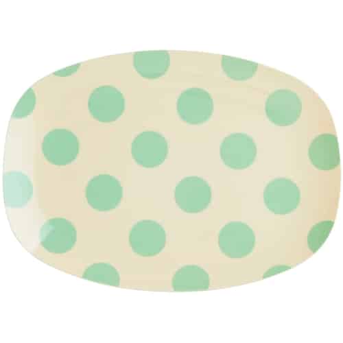 Rice Melamin Tallrik - Rektangulär - Kräm - Green Dot - Liten