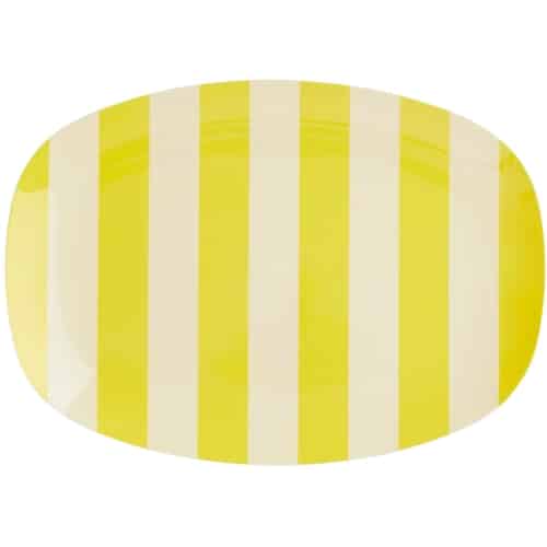 Rice Melamin Tallrik - Rektangulär - Kräm - Yellow Stripes - Liten