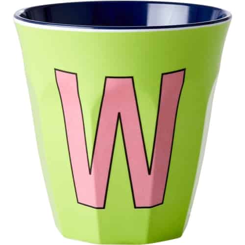 Rice Melamin Kopp med Bokstaven W - Pastell Neongrön - Medium