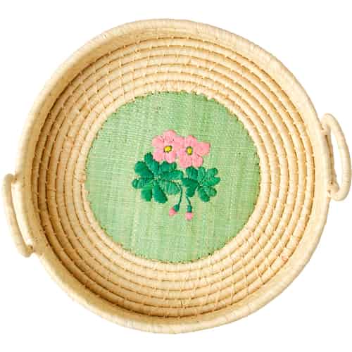 Rice Raffia Brödkorg - Rund - Blomma Broderi - Ljusgrön