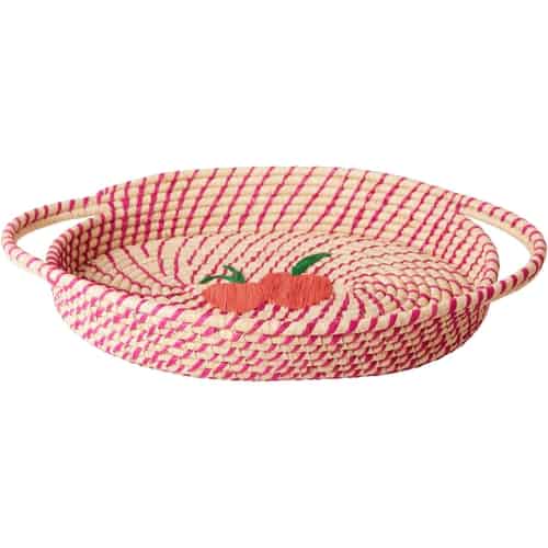 Rice Raffia Brödkorg - Oval - Persikor - Fuchsia