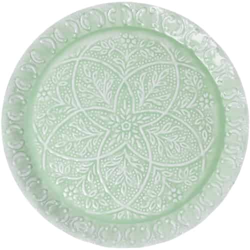 Rice Metall Bricka - Rund - Präglade Detaljer och Kammusselkant - Salviagrön