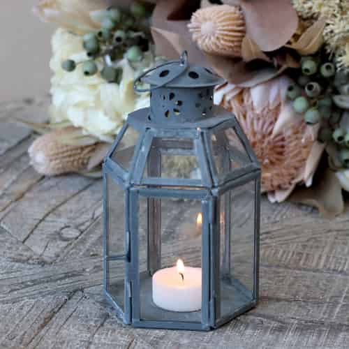 Chic Antique Lykta för Värmeljus - Hexagonal Antik-Zink