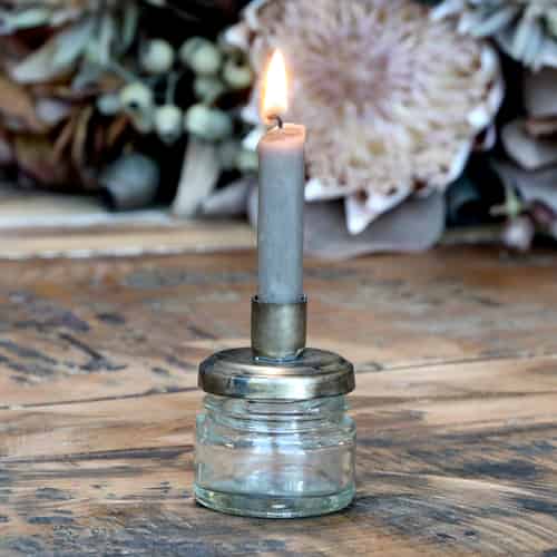 Chic Antique Glasklocka med Ljusstake för ca. 2 cm Stearinljus Antik-Mässing Liten
