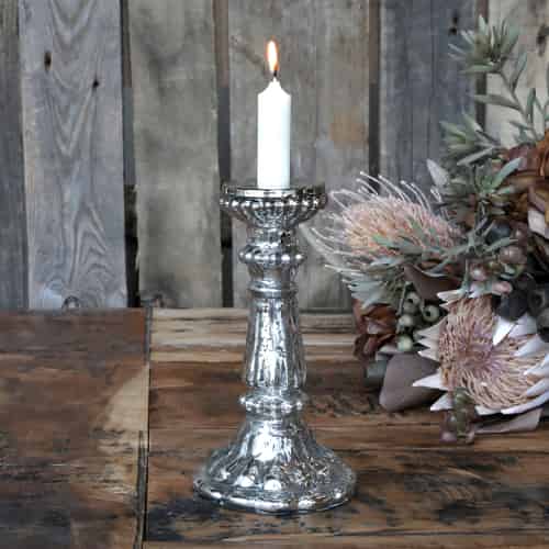 Chic Antique Ljusstake med Pärlkanten för Stearinljus (2,2 cm) Antik-Silver