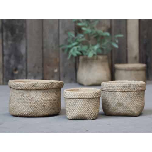 Chic Antique Cement Blomkruka med Flätad Mönster Corte Rustique H 21 cm