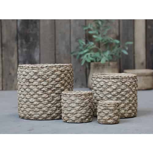 Chic Antique Cement Blomkruka med Flätad Mönster Corte Rustique H 17 cm