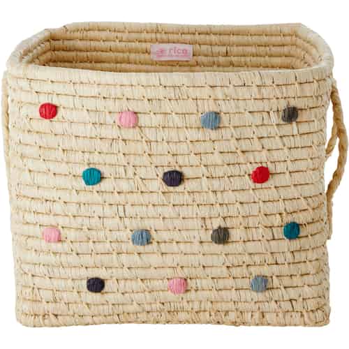 Rice Raffia Korg - Kvadratisk - Dots - 'Believe in Red Lipstick' Colors