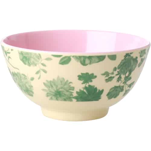 Rice Melamin Skål - Green Rose - Medium