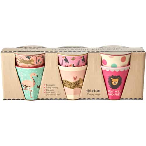 Rice Melamin Barnkoppar - Djungel Djur - Rosa - Liten - Set med 6 i Presentförpackning