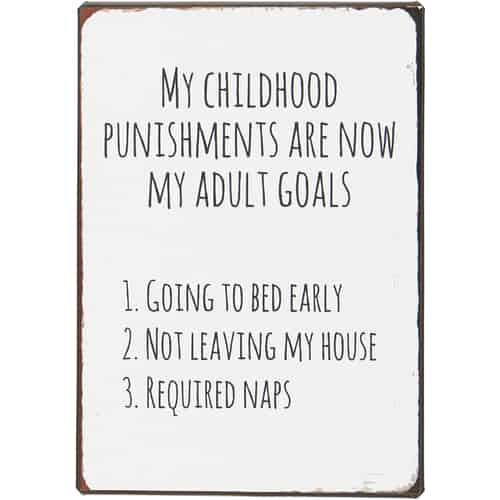 Ib Laursen Metallskylt - My childhood punishments are now my adult goals