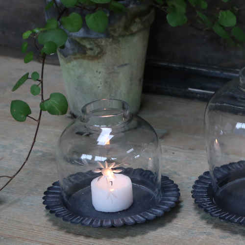 Chic Antique Church Lykta med Fat och Slipninger Glas H 11 cm