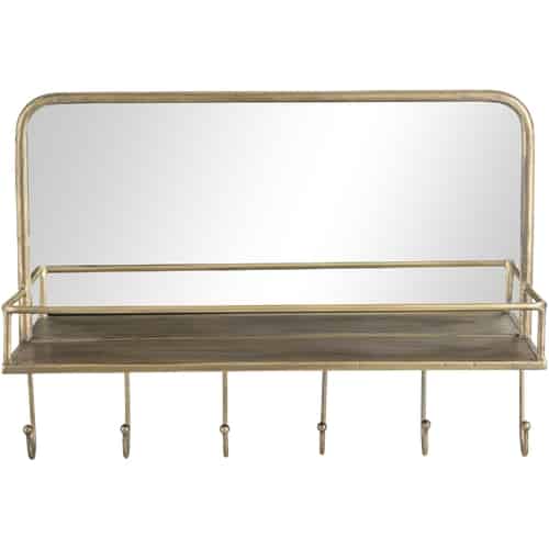 Lene Bjerre Hildia Spegel med Hylla och Krokar 60 x 42 cm Antik Guld