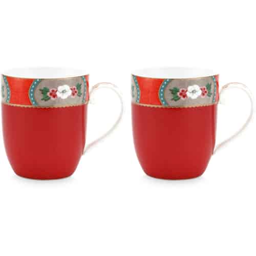 Pip Studio Muggar Liten Blushing Birds Röd Set med 2 i Presentlåda