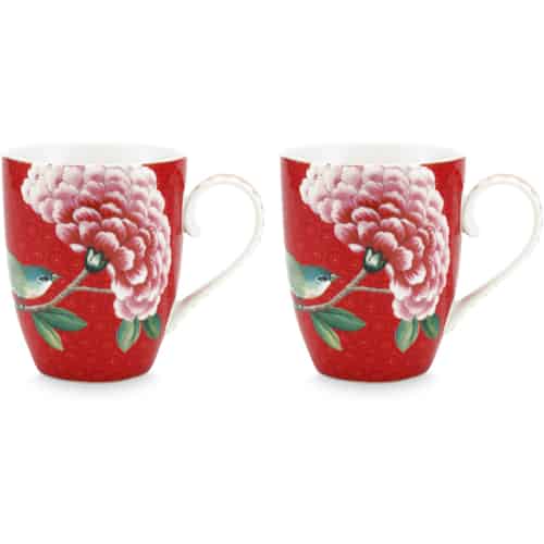 Pip Studio Muggar Stor Blushing Birds Röd Set med 2 i Presentlåda