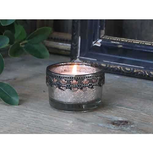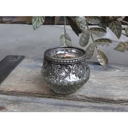 Chic Antique Värmeljushållare med Silverdekor Låg Klar