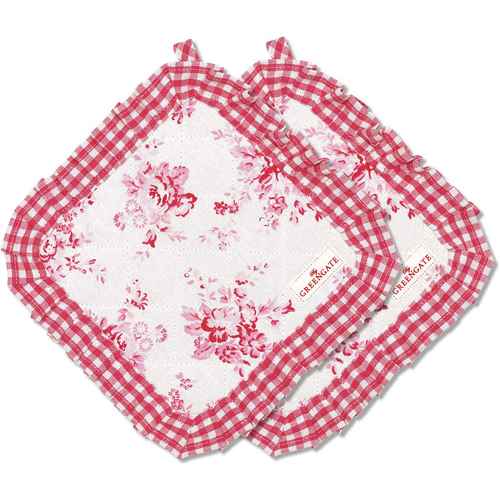 GreenGate Grytlappar - Potholder - Abelone Raspberry - Set med 2