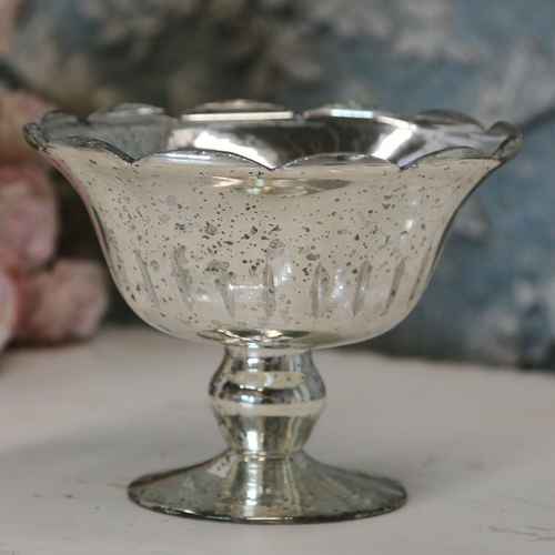 Chic Antique Skål på Fot - Antik Silver - H 11 cm / Ø 15 cm