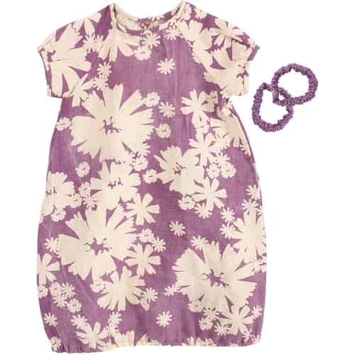 Maileg Kaninkläder - Mega Maxi Purple Dress with Flowers - incl. 2 st hair elast
