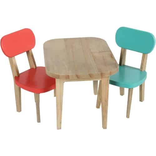 Maileg Kanintillbehör - Trä bord och 2 Stolar - Turkos och Korall
