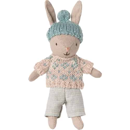 Maileg Kanin Micro - Brun - Blå stickad dräkt - med magnetiska händer
