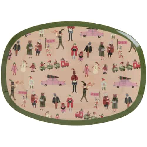Rice Melamin Tallrik - Rektangulär - "Diamond Christmas Tree" - Cream - Liten